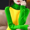Secțiune subțire de primăvară și toamnă, de modă, cu fundul complet, guler înalt, culoare contrastantă, ocazional, pulover, îmbrăcăminte de stradă, pulovere pentru femei, top de tricotat