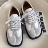 Femei Pantofi Tabi din piele neagră lucioasă de primăvară Toc gros Pantofi joasă Bărbați mărimea 46 cu șireturi Casual alb pantof cuplu sport nou
