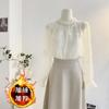 Fashion New 2024 Winter Long Sleeve Stand Collar Ruffled Slim Apricot Velvet Lace Blouse Shirt Women Tops Blouses Shirts J812