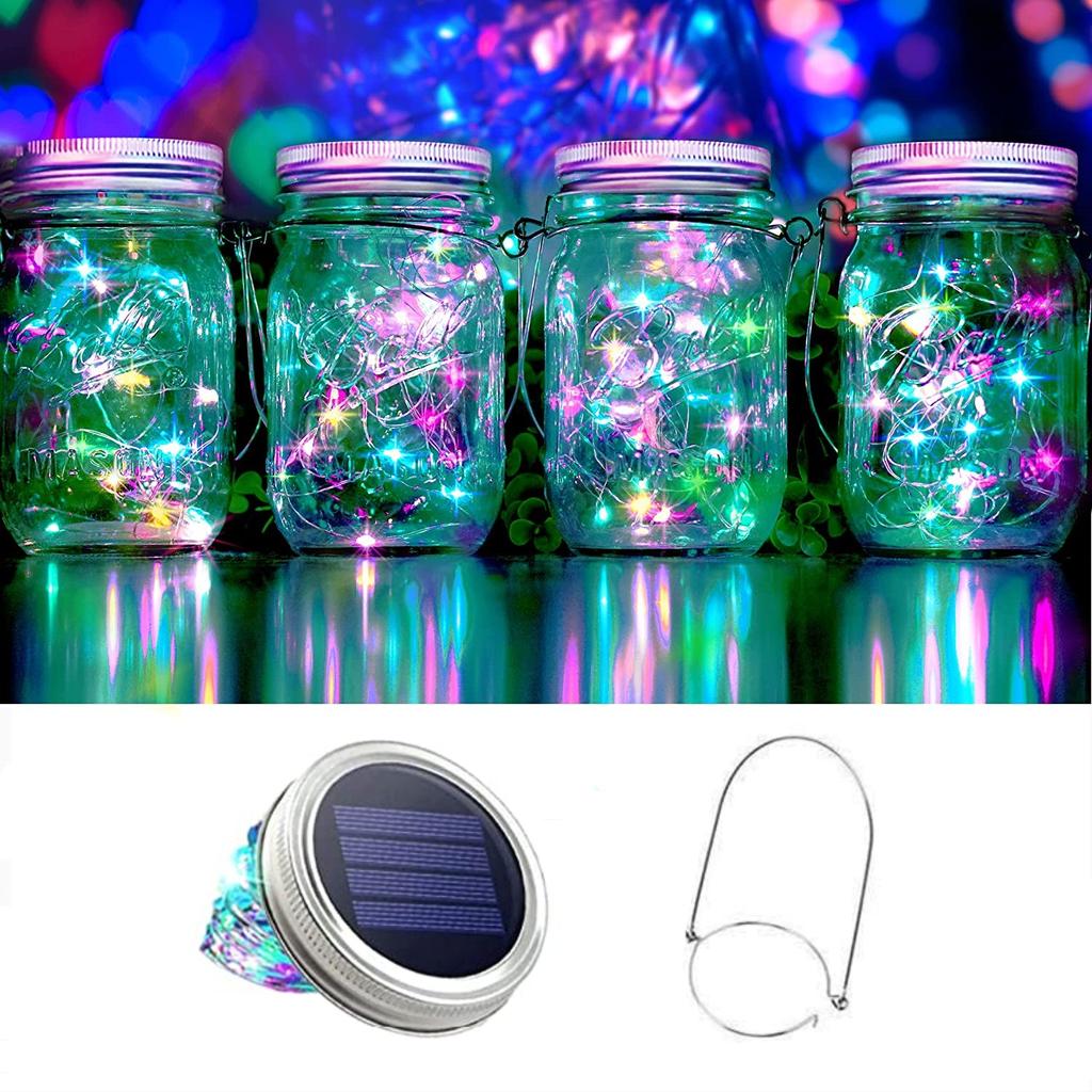 Lumini solare pentru borcan zidar cu 30 LED-uri Capac pentru borcan cu mânere, zână, licurici, rezistent la apă, pentru decorarea de nuntă de grădină. (Fără borcan)