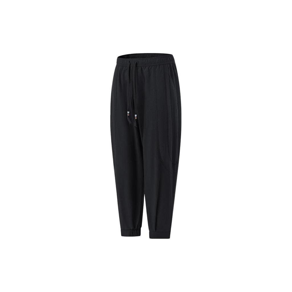 Li Ning Solid Color Mid Waist Cuffed Sports Pants Men bottoms Black AKXT193-2