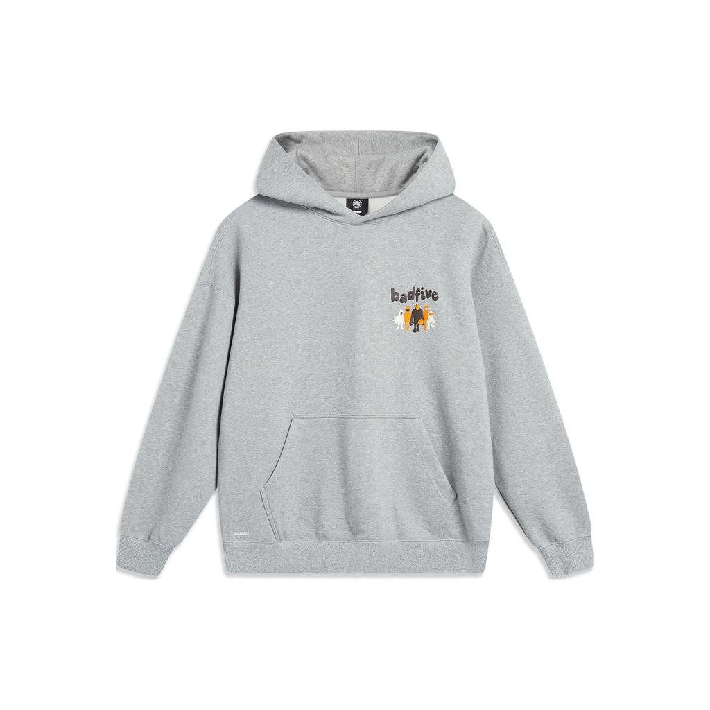 Li Ning Badfive Pulover cu Glugă cu Inscripție Hanorac Unisex Gri Deschis AWDT879-2
