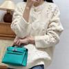Autumn and Winter Round Neck Women's Knitted Sweater Red Versatile Lazy Style Thick Sweater for Women