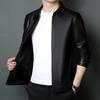 Winter Men's Artificial Leather Polo Mock Neck Jacket Fashion Slim Sheepskin Coat Black Grey Husband Plush