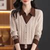 Women's Retro Ethnic Style Knitwear Autumn and Winter Holiday Two-piece Shirt Sweater Loose Flesh Covering Temperament Top