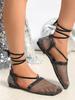 Modă 2024 Femei Noi de lux Șosete Plasă cu Vârf Pătrat Plasă Bandă pentru Picioare Sandale Modă Femei Colorate Diamant Sandale Plate Papuci