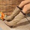 Fashion Women Suede High Boots Knee High Mid Heels Shoes Woman 2025 Trend Fashion Winter Buckle Snow Cozy Dress Motorcycle Boots Mujer