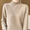 Half High Collar Jacquard Knitted Sweater Women's Autumn and Winter Solid Color Knitted Sweater Long Sleeved Loose Thick Pullover