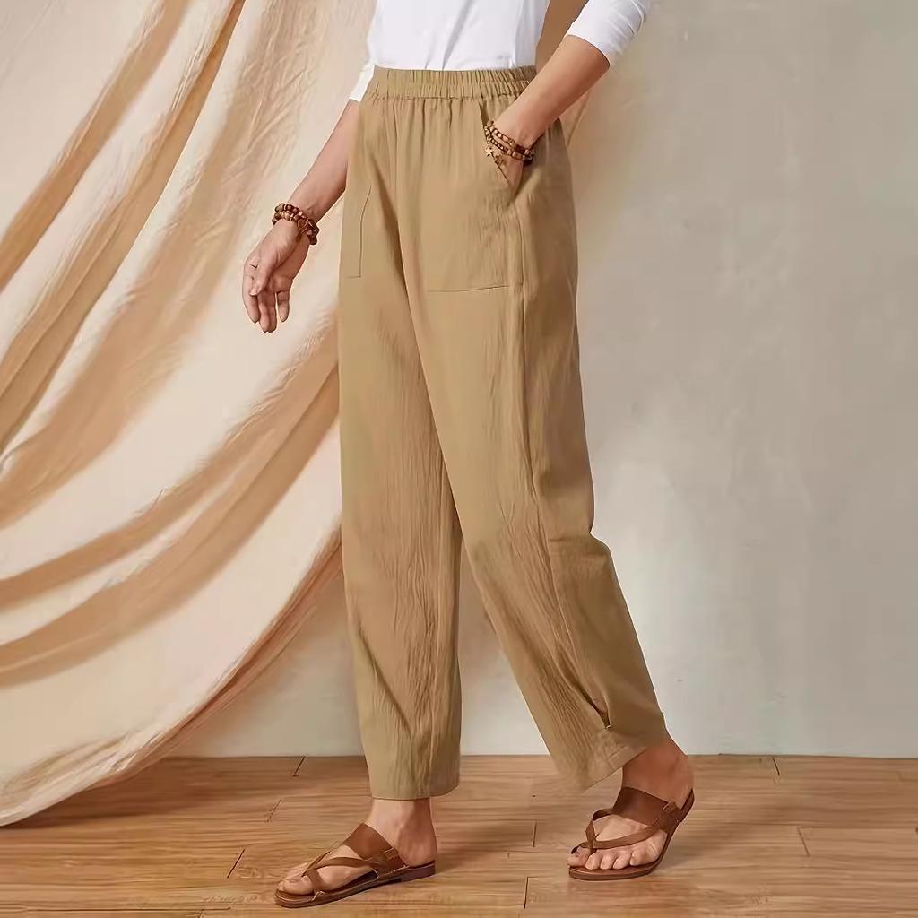 Femei de primăvară și de vară Plus Size culoare solidă buzunare talie elastică pantaloni largi casual cu picior larg