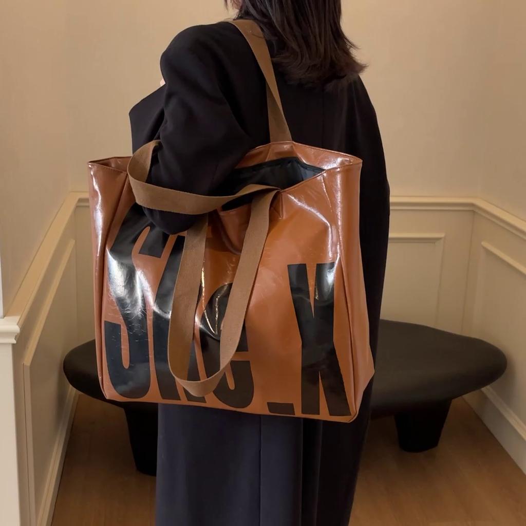 Geantă Tote de Mare Capacitate Geantă de Umăr cu Imprimeu Litere pentru Femei Geantă de Călătorie