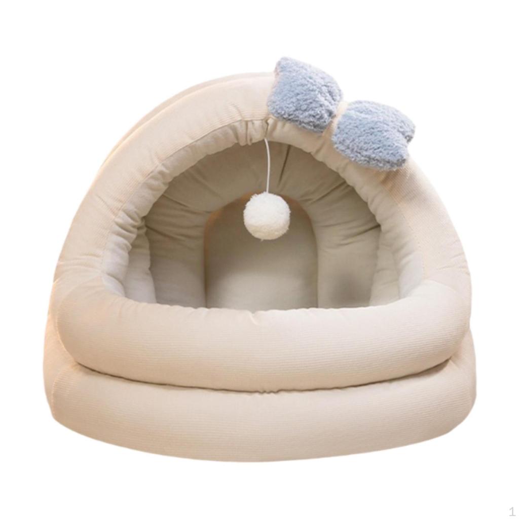 Cat Bed for Winter, Enclosed Nest with Play Ball and Butterfly, Non-Slip Design Small Medium