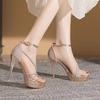 Pantofi cu Toc Înalt Sexy la Modă Femei Pantofi cu Toc Platformă Decupați în Vârf Pantofi Femei Petrecere Cataramă cu Stras Curea Pantofi de Nuntă Femeie we67