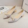 Fashion Trendy Little Fragrant Wind 2024 Summer New Thick Heel Pointed Professional Fairy Bow Decoration Versatile Women's Single Shoes