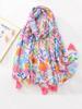 Prosop de plajă 2024 cu flori colorate, din bumbac și cânepă, handmade, cu model cu cuvinte tactile, șal lung cu ciucuri pentru femei