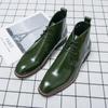 Cizme de modă pentru bărbați, maro, verde, cu șireturi, cizme de cowboy pentru afaceri, lucrate manual, pantofi înalți pentru gleznă, piele Pu Bota Masculina