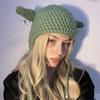 Pălărie cu urechi de pisică cu dungi de culoare solidă, pălărie pulover cu ciucuri la modă și personalizată pentru adulți