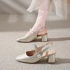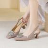 Pantofi eleganti pentru femei, model modern, cu cristale de zăpadă, 4 cm, cu vârf pătrat, în culorile galben, bej și negru, cu toc ciudat și cataramă la spate