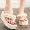 Papuci de modă pentru femei cu strasuri, papuci flip-flop eleganți și stilați de designer cu platformă, papuci de lux, sandale drăguțe cu pană pentru plajă