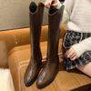 Fashion Shoes for Women Biker Black Long Pointed Toe Winter Knee High Shaft Footwear Ladies Boots Work Gothic Chic and Elegant Cosplay