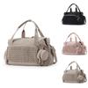 Comoditate ușoară de transport: Designul versatil al acestei geanți pentru scutece pentru copii permite mai multe opțiuni de transport. Echipat cu o curea de umăr detașabilă și un manșon pentru bagaj pentru ușurință de călătorie, comută fără efort între stilurile de crossbody, de umăr sau de genți de mână.