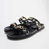 Sandale plate negre pentru femei ZA 2024 vara nouă sandale de plajă pentru femei casual papuci de exterior pentru femei sandale elegante cu curea cu cataramă