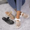 Women's Shoes Hot Selling 2024 New Women's Slippers Summer Closed Toe Solid Color Mesh Bow Square Heel Casual Slippers