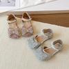 Children's Sandals for Girls Rhinestone Bow Toes Wrapped Princess Mary Janes for Party Wedding Shows Kids Fashion Shoes 2024 New