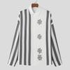 INCERUN Spring Men Long Sleeve Casual Shirts Floral Striped Patchwork Tops