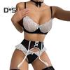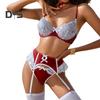 Îmbunătățiți-vă alura cu acest set rafinat de lenjerie intimă, cu inele de oțel pentru o siluetă măgulitoare. Acest set include un sutien, lenjerie intimă, șosete, papion și bretele și funde fermecătoare pentru un aspect dulce și drăguț. Îmbinarea cu dantelă adaugă o notă de sexy, făcându-vă irezistibil de atractiv.