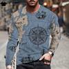 Vintage Print Men's Long Sleeve T-shirt Round Neck Men's Clothing 3D Print Vintage Graphic T shirts Breathable T-shirts for Men