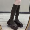 Fashion High Platform Boots Women Suede Flats Shoes Women 2024 Trend Winter Designer Mid Heels New Motorcycle Boots Trend Femme Shoes