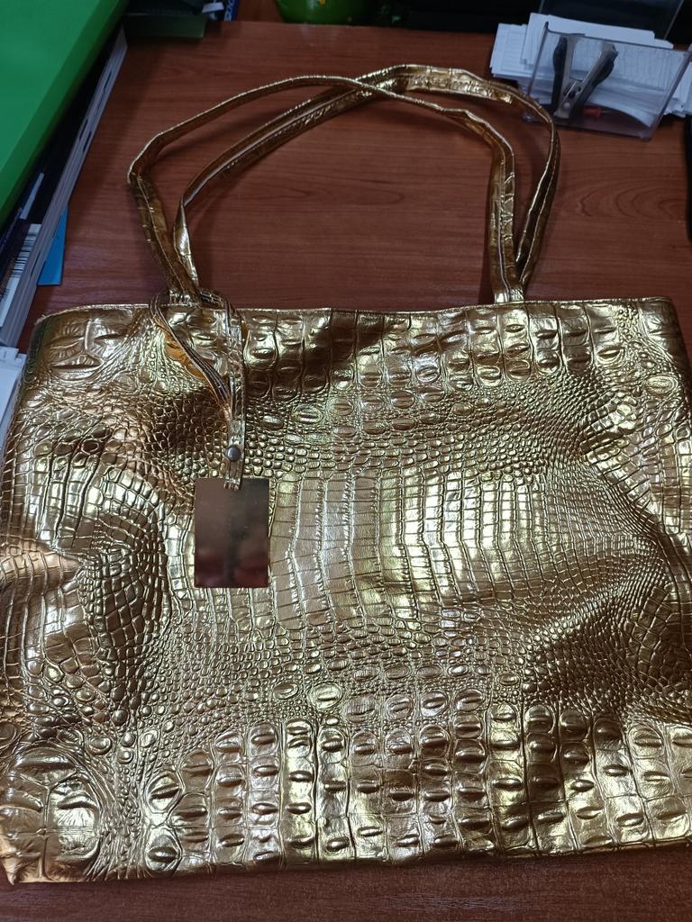 Geanta este mare si confortabila. Fabricat din imitatie de piele moale. Culoarea este pur și simplu aurie - aurie.