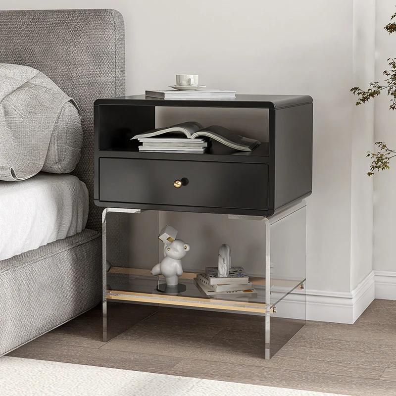 Bedside table bedroom simple modern small apartment transparent black and white net red ins wind light luxury bedside table