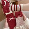 Șosete elegante din poliester cu dungi pentru femei cu detaliu fundă – pachet 5 perechi, 80% poliester 20% elastan, colecția de toamnă/iarnă
