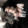 European and American Long Pointed Black and White Graffiti Girl Retro Style Gradual Change Wearable Detachable Manicure