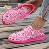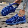 Hot Seller 2024 Novelty Shiny Sequins Flat Loafers Women's Shallow Mouth Lacing Soft Bottom Sneakers Solid Slip-on Large Size 43