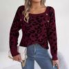 Women's Knit Sweater U-Neck Button Long Sleeve Pullover Jumpers Leopard Print Button Knitwear Tops