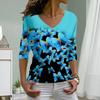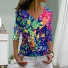 Moda damă casual cu mâneci 3/4 cu nasturi florale imprimat cu gât rotund Pulover Top Îmbrăcăminte casual