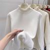 Thickened Velvet Sweater Women's Wooden Ear Nail Bead Knitted Sweater Solid Color Warm One Fleece Inner Hoodie