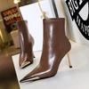 Cizme scurte de iarnă, tocuri subțiri, tocuri super înalte, cizme de damă, cizme tub scurt, vârf metalic de fier, cizme scurte la modă