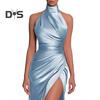 Design modern al gâtului Halter: Ieși în evidență prin decolteul șic și cu gulerul înalt al acestei rochii din satin. Realizată pentru creatorii de tendințe, această piesă la modă combină stilul și confortul perfect, pentru un look statement la orice eveniment.