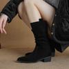 Krazing Pot Nubuc din piele intoarsa de vaci Cizme de iarna cu varf rotund cu toc mediu pentru femei Cizme cu pliuri retro elegante pentru femei la mijlocul gambei
