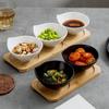 Bol ceramic pentru gustări cu 6 compartimente, bază din lemn, platou pentru gustări, farfurie pentru degustare, bol pentru fructe, boluri pentru desert, vas pentru dim sum, farfurii pentru cină, veselă