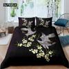 Set Husă Plapumă Macara Mărime Queen Set de Lenjerie de Pat în Stil Japonez Model Flori de Cireș Femei Fete Husă de Plapumă Tradițională Japoneză
