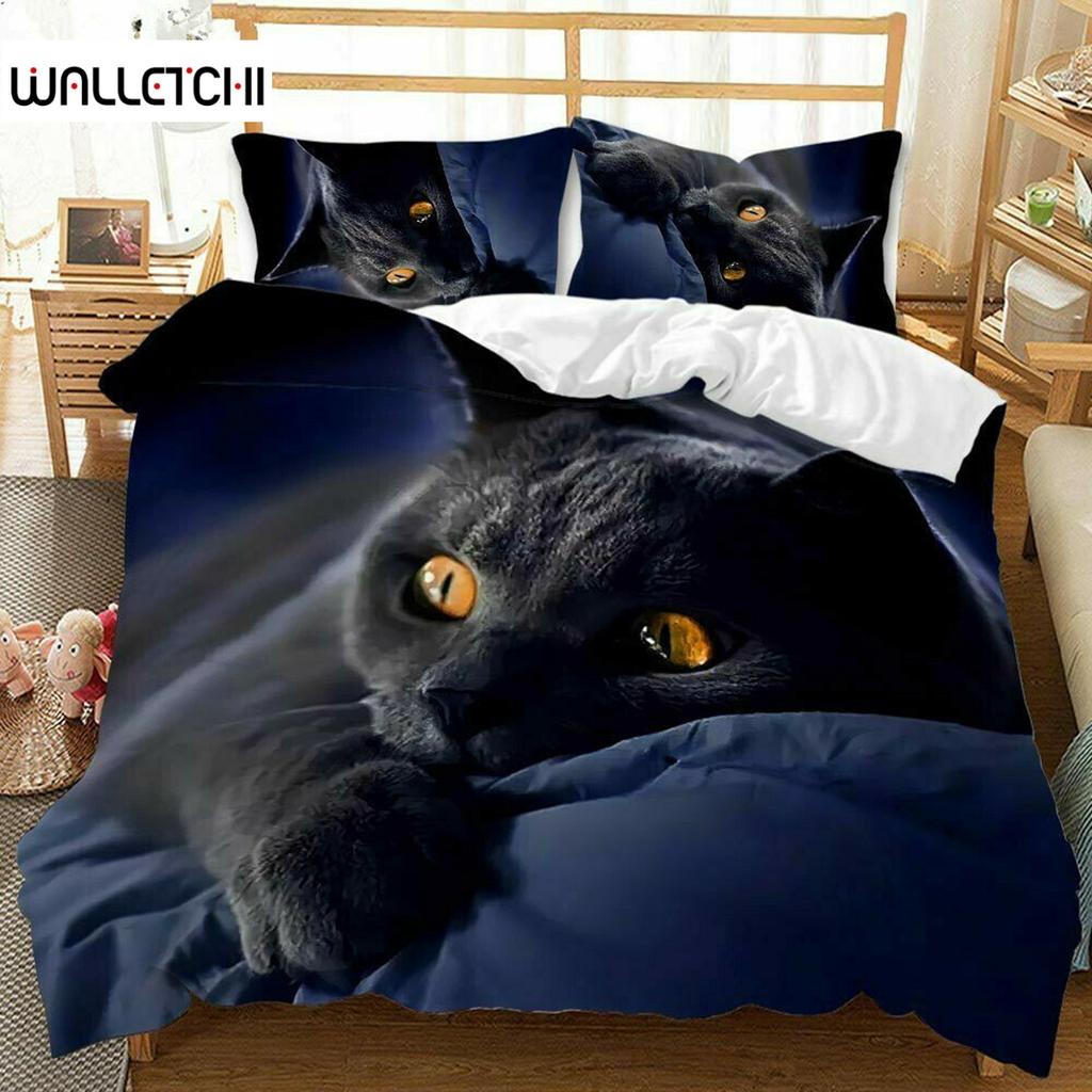 Set de husă de pilota cu pisică Fete Băieți Drăguț Pisică albastră cu imprimare 3D Set de lenjerie de pat Animal albastru îndrăzneț Dublu Queen King Size Husă de pilota din poliester