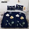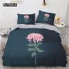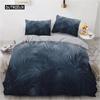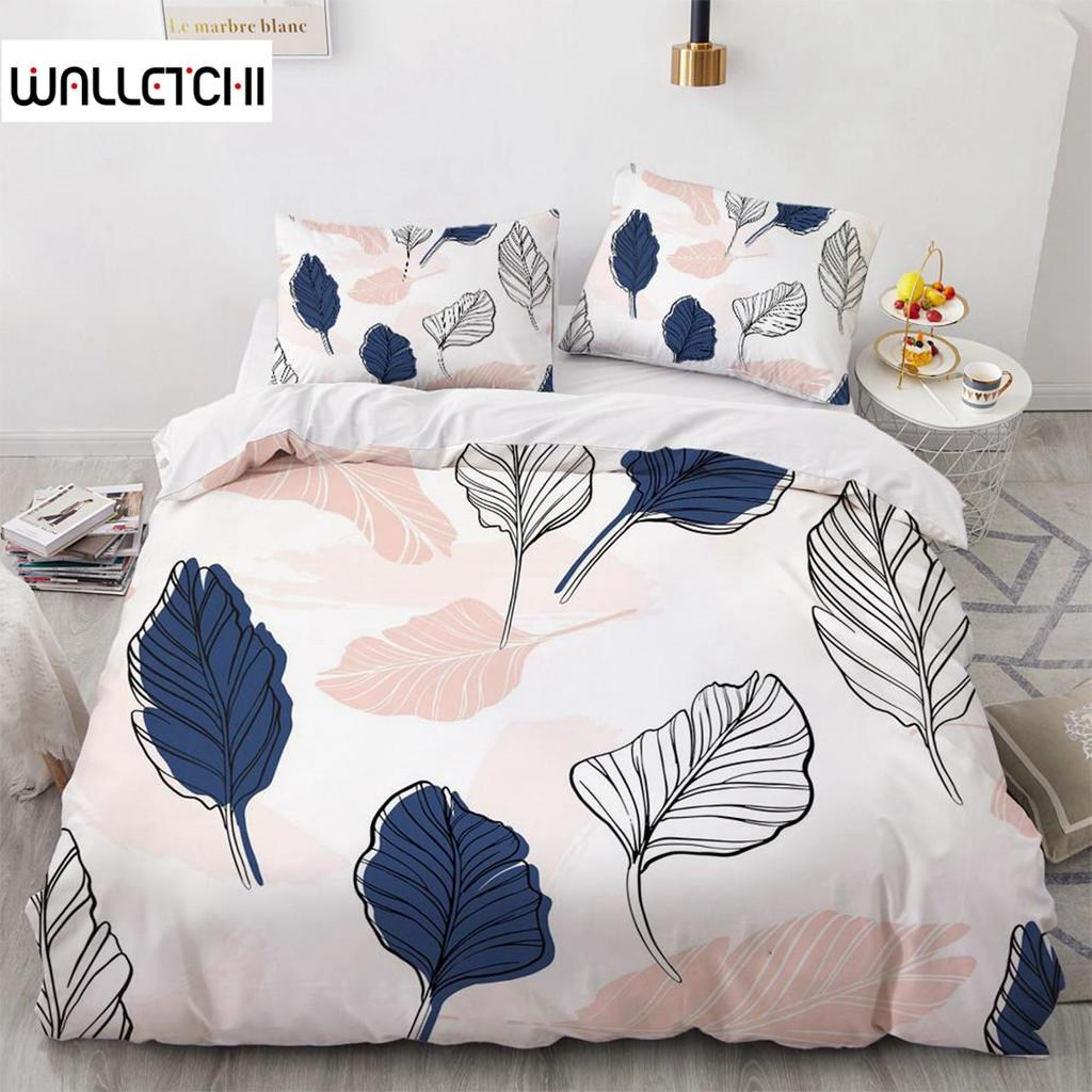 Set de cuvertură de pilota cu plante, mărime king, albastru bleumarin, roz, frunze de plante, set de lenjerie de pat șic, moale pentru toate anotimpurile, husă de pilota din poliester