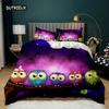 Set cuvertură de pilota cu bufniță Decor cu bufniță și stele Husă de cuvertură Set de husă de pilotă pentru copii, cu animale drăguță, din poliester.