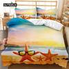 Set husă de plapumă de plajă Set de lenjerie de pat de vară cu ocean Hawaiian Marin Valuri de mare Imprimeu 3D Stea de mare Poliester Husă de plapumă Queen King
