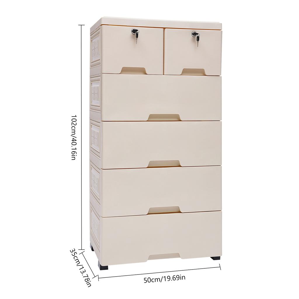 Comodă Modernă de Depozitare Cabinet 6 Sertare Bej de Uz Casnic Bej Multistrat Mobil PP Dulap Rectangular Organizator cu Raft Blocabil