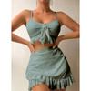 Costum de baie din trei piese, cu fustă la șold, europeană și americană, cu bikini pentru plajă